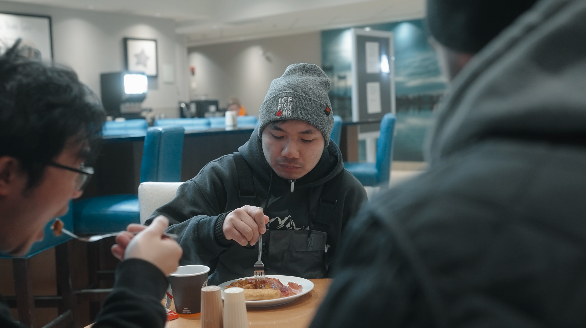No bromeaba cuando dije que si entras en el vestíbulo del Canalta en invierno, todo el desayuno continental está lleno de pescadores de hielo con peto. Sonares, botas y neveras apiladas en la puerta y bacon y gofres bajando por la escotilla, es un comienzo de mañana bastante ideal y único. La zona de desayuno es espaciosa, con muchos asientos y un montón de opciones de comida, desde gofres, bacon, bagels, yogur, de todo. La comodidad de tener café y desayuno abajo listo para llevar en las mañanas de invierno es ideal.